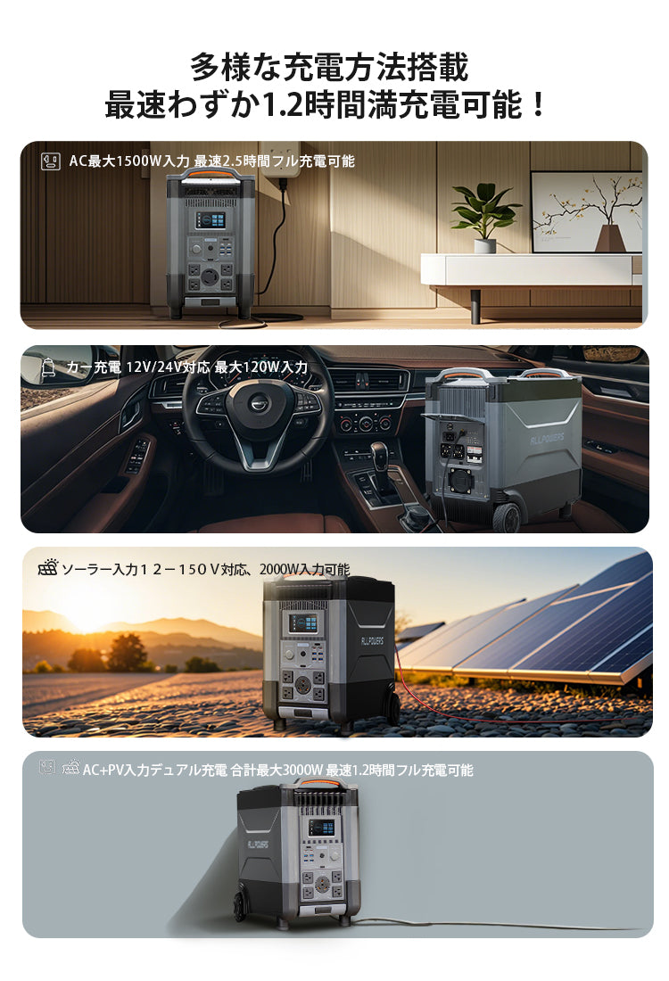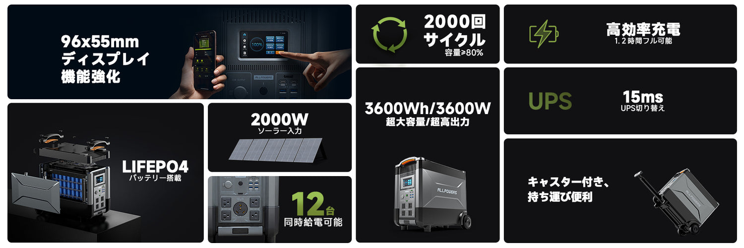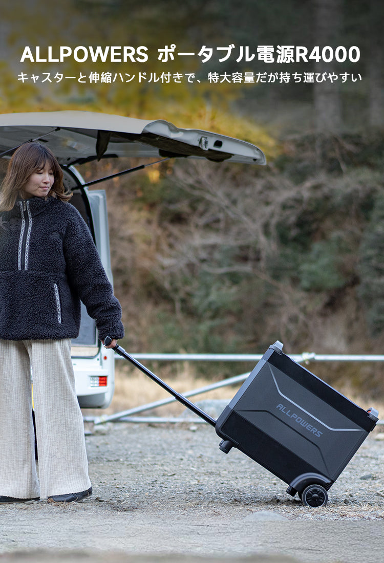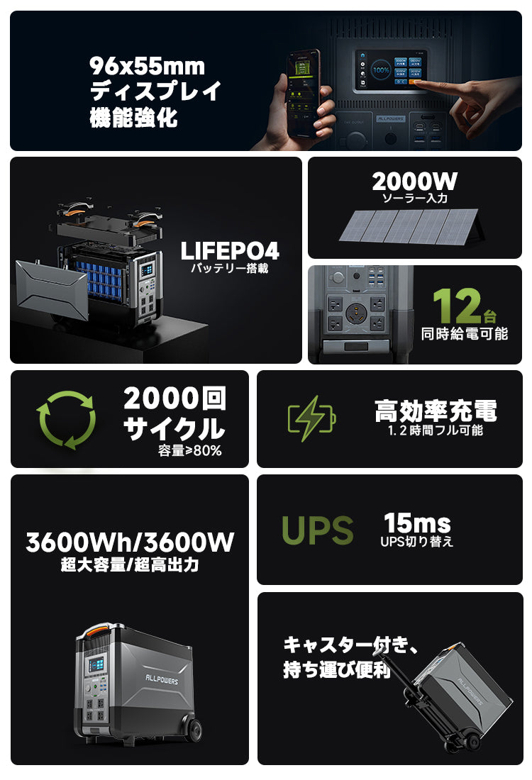 ALLPOWERS R4000ポータブル電源はUPS(無停電電源装置)付きです。UPS機能をONにすると、たとえ急に停電しても、繋がっている電気製品が止まることがなく、そのまま使えます。