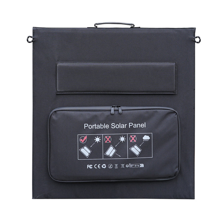 重量がただ5.65kgの超軽量ソーラーパネルです。トートバッグのように持ち運べるため、かさばらず狭いスペースでも収納可能で。最適な角度で太陽光エネルギーを得るためのキックスタンド付きです。二つ折り式で、キャンプなどのアウトドア、レジャー、災害時などでも電力を確保することが可能です。